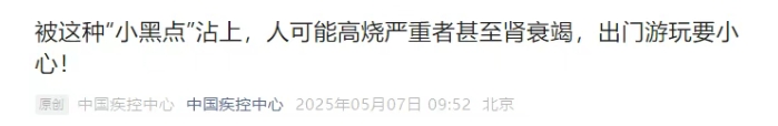 被這種“小黑點(diǎn)”沾上,嚴(yán)重可致死!中疾控緊急提醒→