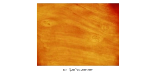 幼蟲期:當人們誤食含旋毛蟲的肉制品,肉中的旋毛蟲幼蟲通過人體的胃腸道進入小腸并發(fā)育為成蟲。