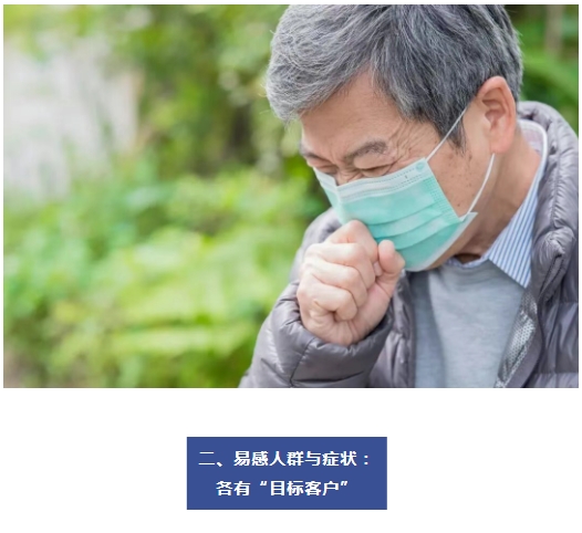 流感病毒:“無差別攻擊”,各年齡段人群都可能中招。它的特點是來勢洶洶,常導致突發(fā)高熱(39-40℃)、怕冷、頭痛、全身肌肉酸痛、乏力等嚴重的全身癥狀,而咳嗽、流鼻涕等呼吸道癥狀反而不是最突出的。